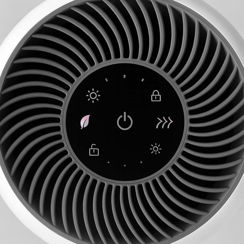 Air passes through three main layers: a pre-filter that traps larger particles, a HEPA element that captures fine dust, and a carbon layer that absorbs odors. The airflow moves upward, releasing purified air evenly across the room. The result is a balanced environment that feels light and naturally fresh.